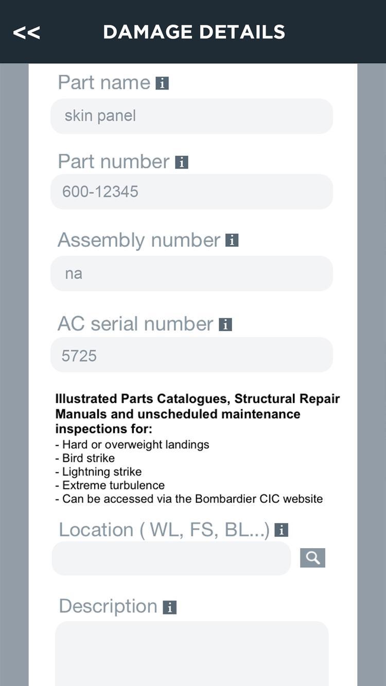 Вернуть вас в воздух, просто и быстро; Используйте Fly, чтобы удаленно документировать и сообщать о Challenger 60X, Global Express и Challenger 300 Структурный ущерб самолетам Bombardier для действий. Четкий и простой интерфейс захватывает все критические технические данные для немедленного начала процесса ремонта.