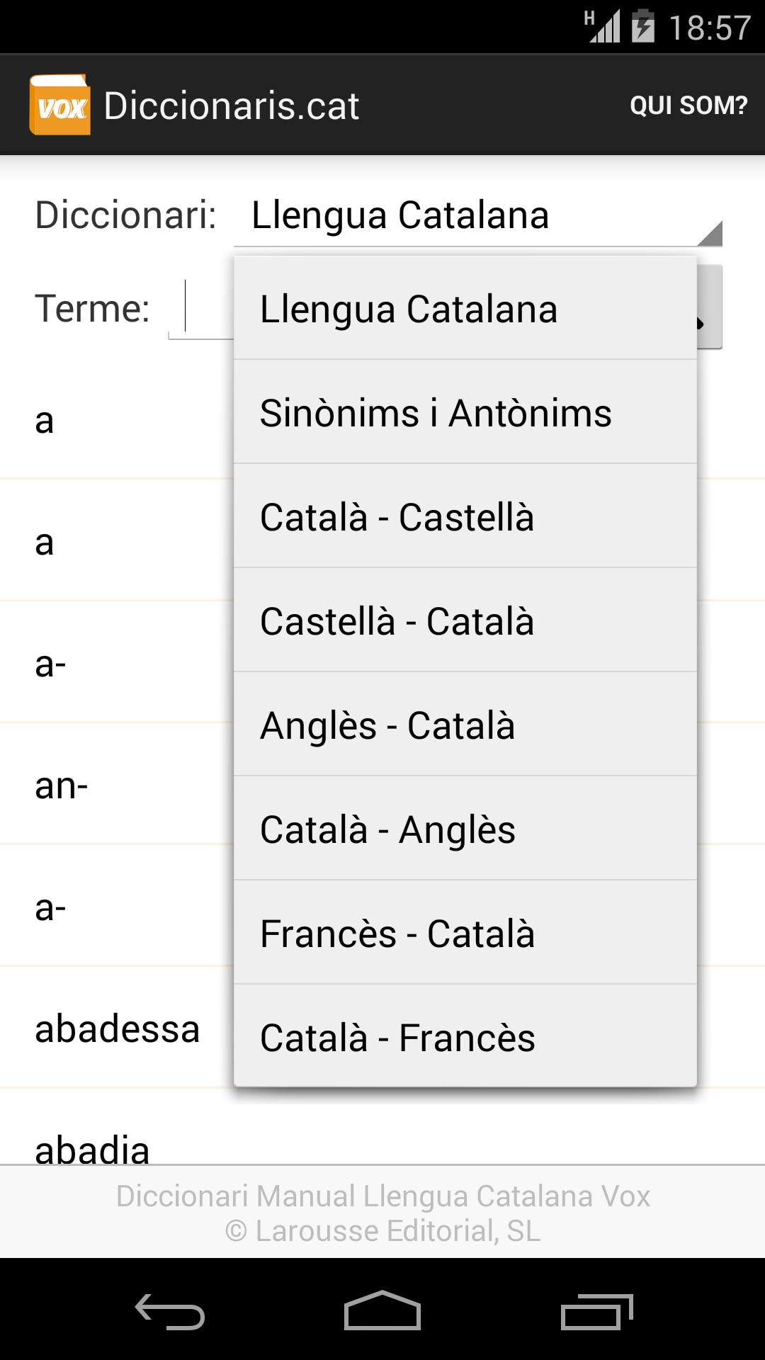 Наслаждайтесь 8 бесплатными словарями от www. Diccionaris.cat . Определения поиска в каталонском языке и переводы на английский, французский и испанский.