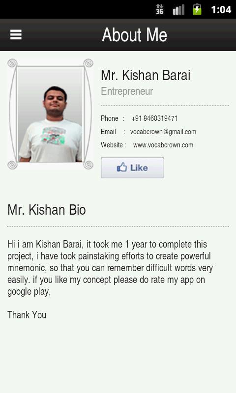 Пожалуйста, загрузите Visual Mnemonics Ocabulary (Mini App 2MB), прежде чем использовать ваше 70 МБ, пожалуйста, протестируйте Mini App в вашем устройстве и просмотрите его концепцию перед загрузкой приложения Full Pro. Оба эти приложения абсолютно бесплатны