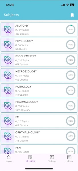 Основные функции включают ежедневные вопросы, курсы, наполненные целевыми учебными видеороликами, QBank, Todo, Live Sessions