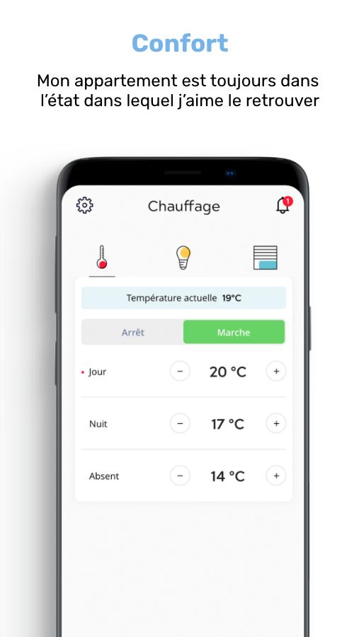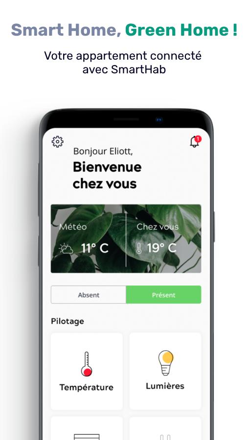 С SmartHab на вашем смартфоне, где бы вы ни находились, вы можете отрегулировать температуру своей квартиры, быть предупрежденными возможными вторжениями, пилотным оборудованием, таким как ваше отопление или ваши ставни, следуйте вашим потреблению электроэнергии или даже узнайте влажность вашей квартиры.