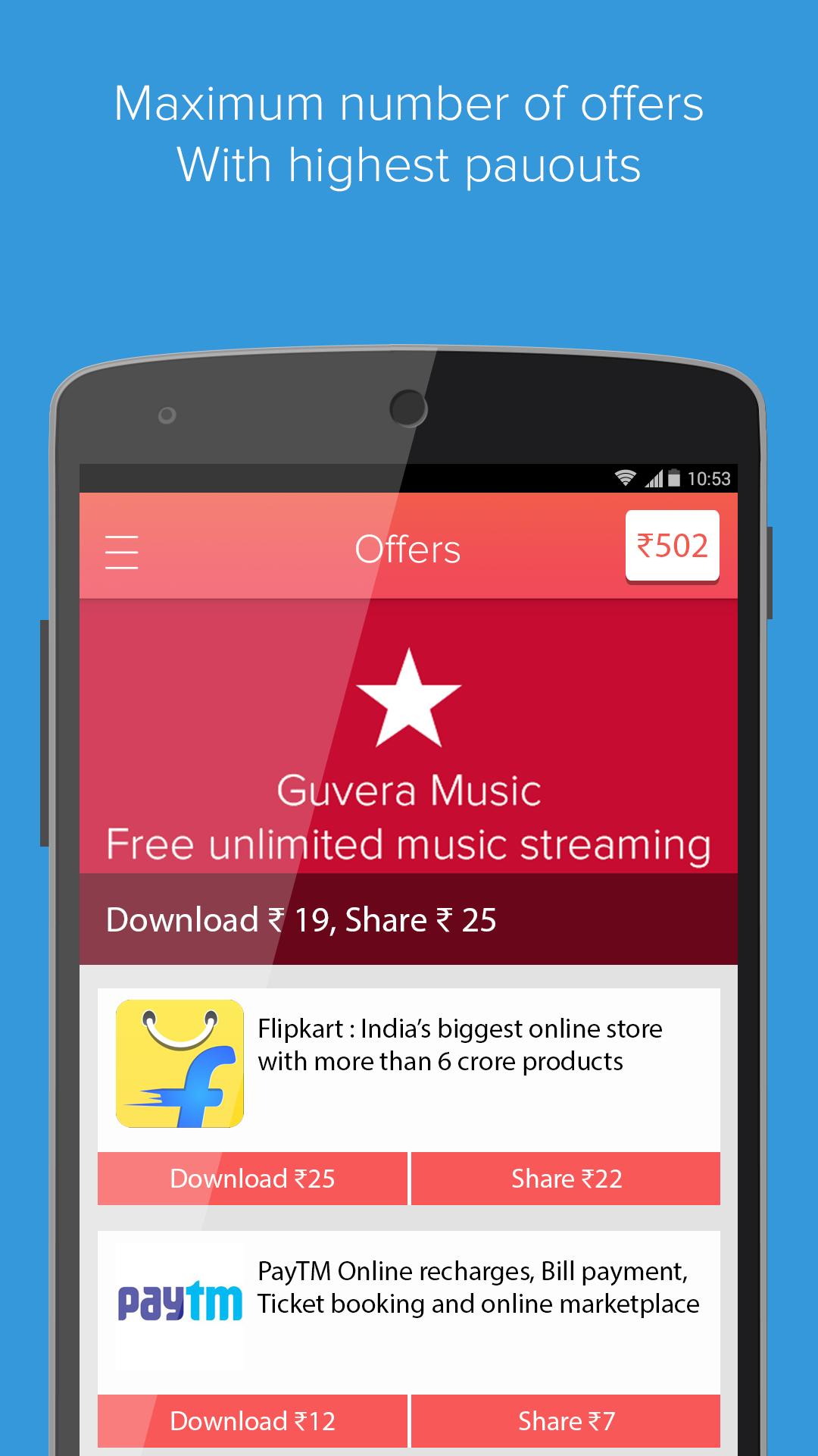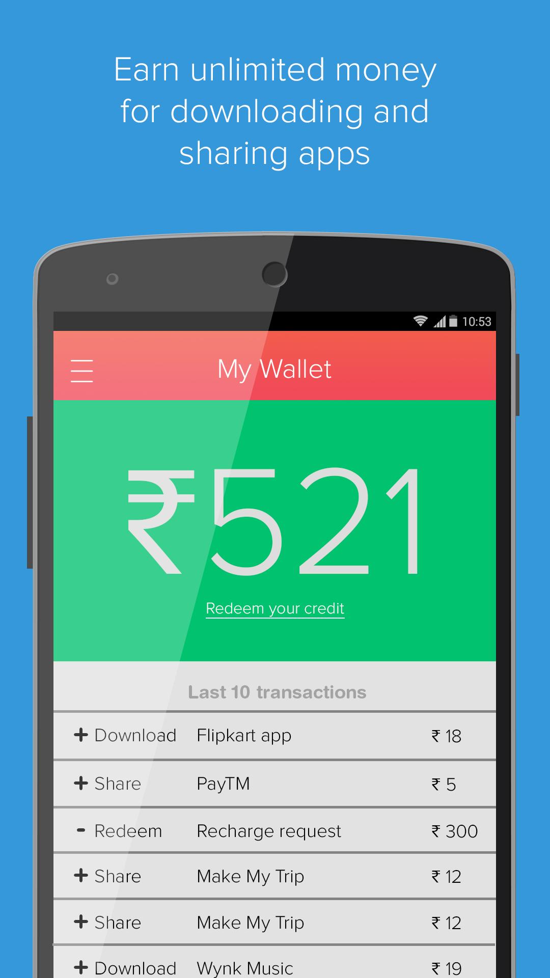 Мы верим в качество, а не количество приложений, поэтому то, что вы получите, является более высоким кредитом для загрузки этих приложений, и вы можете заработать дополнительные деньги, поделившись предлагаемыми приложениями на Facebook и WhatsApp.