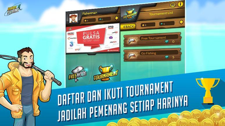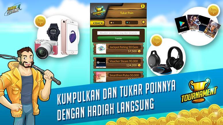 Рыбальные игры с прямыми призами каждый день, вам просто нужно следить за турниром в соответствии с графиком в игре, есть два турнира, которые можно следовать, бесплатно и драгоценные турниры, получают как можно больше очков лояльности, эти точки можно обмениваться с помощью прохладных призов, таких как ваучеры, гаджеты, электроника и многое другое, очень легко воспроизвести только «Tap Tap and Scroll», гаджеты, электроника и многое другое.