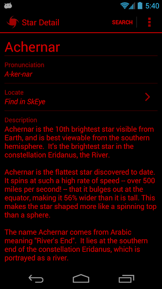 * การรวมเข้ากับแอพ Skeye Planetarium สำหรับการค้นหาดาว (น่าเสียดายที่ Google Sky Map ไม่รองรับคุณสมบัตินี้)