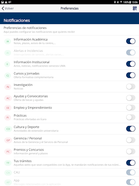 แอปพลิเคชันช่วยให้ผู้ใช้สามารถสมัครรับข้อมูลช่องข้อมูลที่แตกต่างกันเพื่อให้สามารถปรับแต่งการโต้ตอบของแอปพลิเคชันกับพวกเขา (การตั้งค่า -> การแจ้งเตือน)