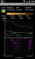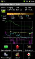 Battery Spy ช่วยให้คุณตรวจสอบระดับแบตเตอรี่ของอุปกรณ์ Android ของคุณโดยการรายงานเปอร์เซ็นต์ปัจจุบันและให้ข้อมูลรายละเอียดเพิ่มเติมเช่นอัตราการชาร์จอุณหภูมิแรงดันไฟฟ้าและเวลาการใช้งาน ระดับเปอร์เซ็นต์แบตเตอรี่ปัจจุบันจะแสดงบนแถบการแจ้งเตือน สถิติเพิ่มเติมจะแสดงในแถบการแจ้งเตือนการดึงลงและข้อมูลเชิงลึกเกี่ยวกับการชาร์จแบตเตอรี่ของคุณและประวัติการใช้งานในหน้าจอแอปพลิเคชันหลัก