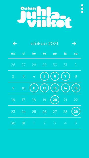 ด้วยความช่วยเหลือของแอปพลิเคชัน Oulu Festival Week คุณสามารถวางแผนการได้รับประสบการณ์ของคุณด้วยข้อมูลโปรแกรมที่ทันสมัย