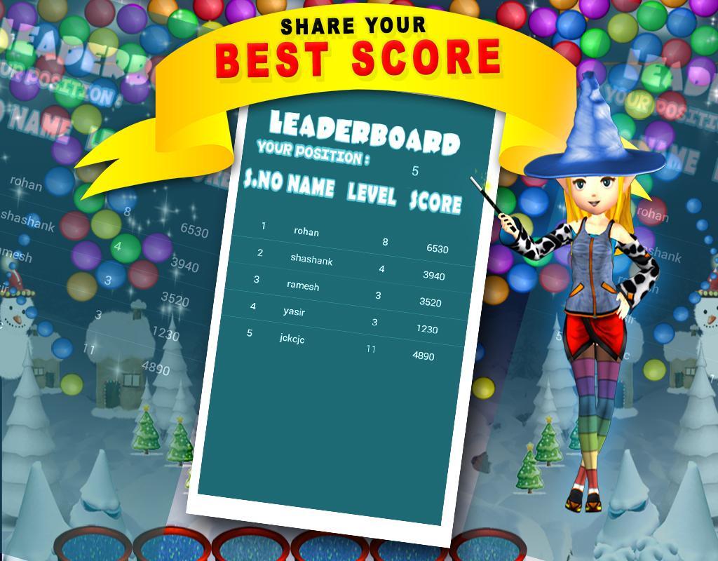 มีอีกมากที่★★★★★เกมยิงฟองสบู่ครั้งแรกกับผู้นำ-บอร์ด★★★★★ คุณสามารถท้าทายผู้เล่นคนอื่น ๆ และทำให้การขยับขึ้นเป็นผู้นำโดยจบระดับมากขึ้นด้วยคะแนนที่ยอดเยี่ยม