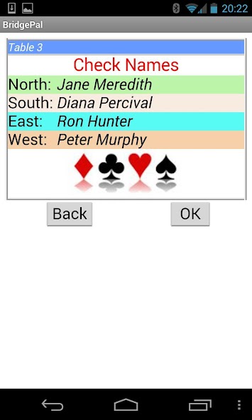 หากมีไฟล์บันทึกมือการตรวจสอบการตรวจสอบรายการตามสัญญาต่างๆสามารถดำเนินการได้และอาจดูมือในแอพ BridgePal พร้อมกับสัญญาที่สามารถทำได้ทันทีหลังจากที่พวกเขาเล่นที่โต๊ะ หากมือถูกสับเปลี่ยนที่โต๊ะแทนที่จะเป็น pre-dealt ไฟล์บันทึกมืออาจถูกสร้างขึ้นโดยป้อนมือผ่านแอพ BridgePal มือสามารถเล่นได้ในโหมด Double Dummy บนหน่วยการให้คะแนน BridgePal พร้อมการ์ดด้วยคำแนะนำการ์ดหลังจากที่พวกเขาเล่นที่โต๊ะ (หากติดตั้งแอพฟรี Bridgesolver บน BridgePal )