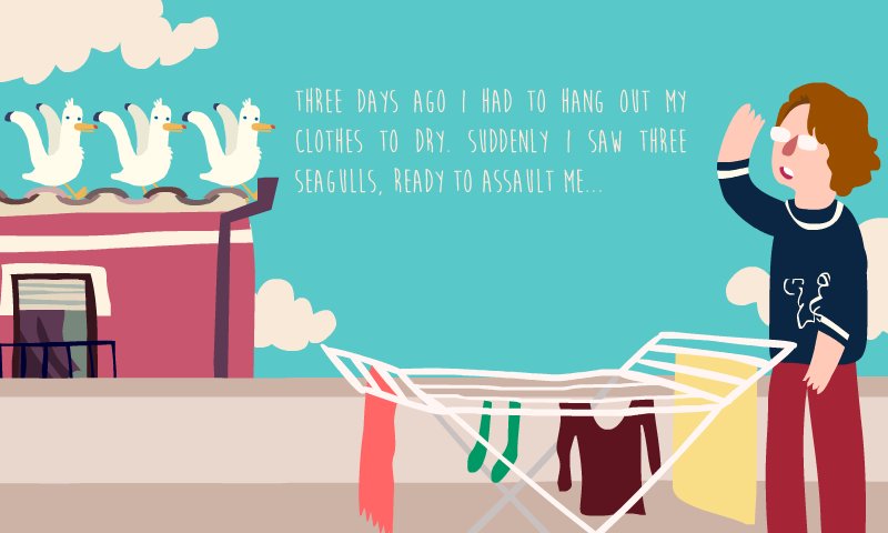 นกนางนวลจะแย่งอิสรภาพของเราในการแขวนเสื้อผ้าบนระเบียง แต่ด้วยความช่วยเหลือของคุณ เราจะสามารถกบฏได้ กองทัพกบฏเติบโตขึ้นทุกวันและเราใกล้จะหลุดพ้นแล้ว แต่การจะชนะเราต้องการความช่วยเหลือจากทุกคน