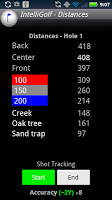无知的软件会自动为您提供GPS距离绿色的前后,中间和背面的距离,以及100、150和200码/仪表标记,用于GPS调查课程。快速,轻松地跟踪您的射击,包括您的驱动器,球道1,球道2,进近,芯片,1st Putt和第二个推杆。只需点击Intellientolf的Shot Tracking Box,就可以选择所有内容。 Intelligholf很容易!
