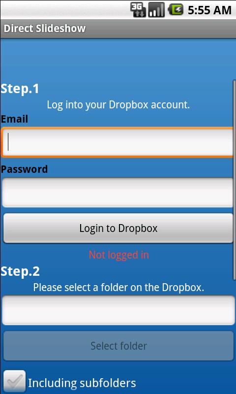 - Dropbox帐户对于使用此应用程序是必不可少的。如果您尚未有帐户,则可以借此机会注册,请享受此应用程序