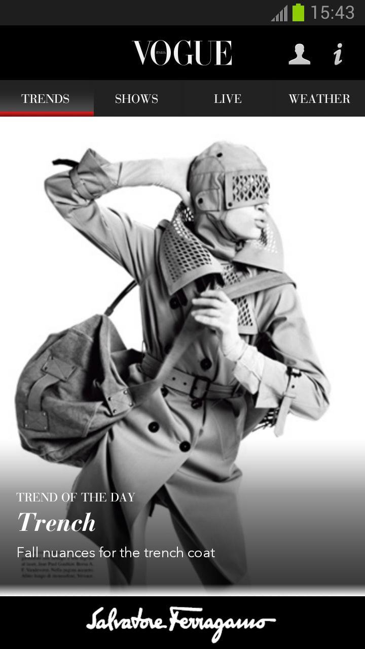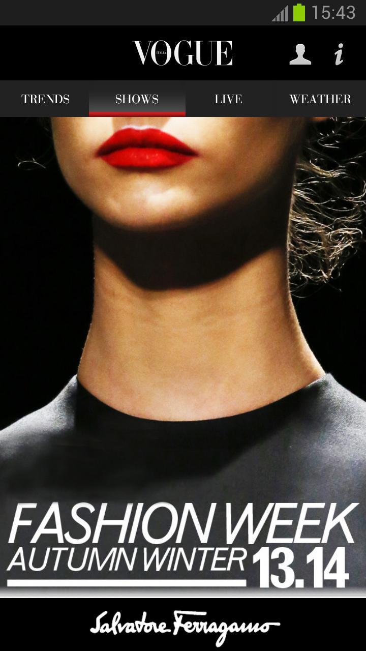 构想体验最伟大品牌的时装秀的强度是应用程序的第三部分,它展示了时装秀的流媒体。从FW13-14开始,这些视频将按时间顺序进行,以便进行免费咨询。