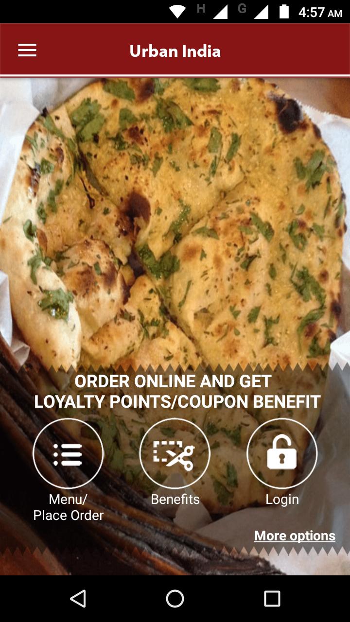 最终客户可以使用Urban India应用程序来查看和下在线订单为Urban India餐厅