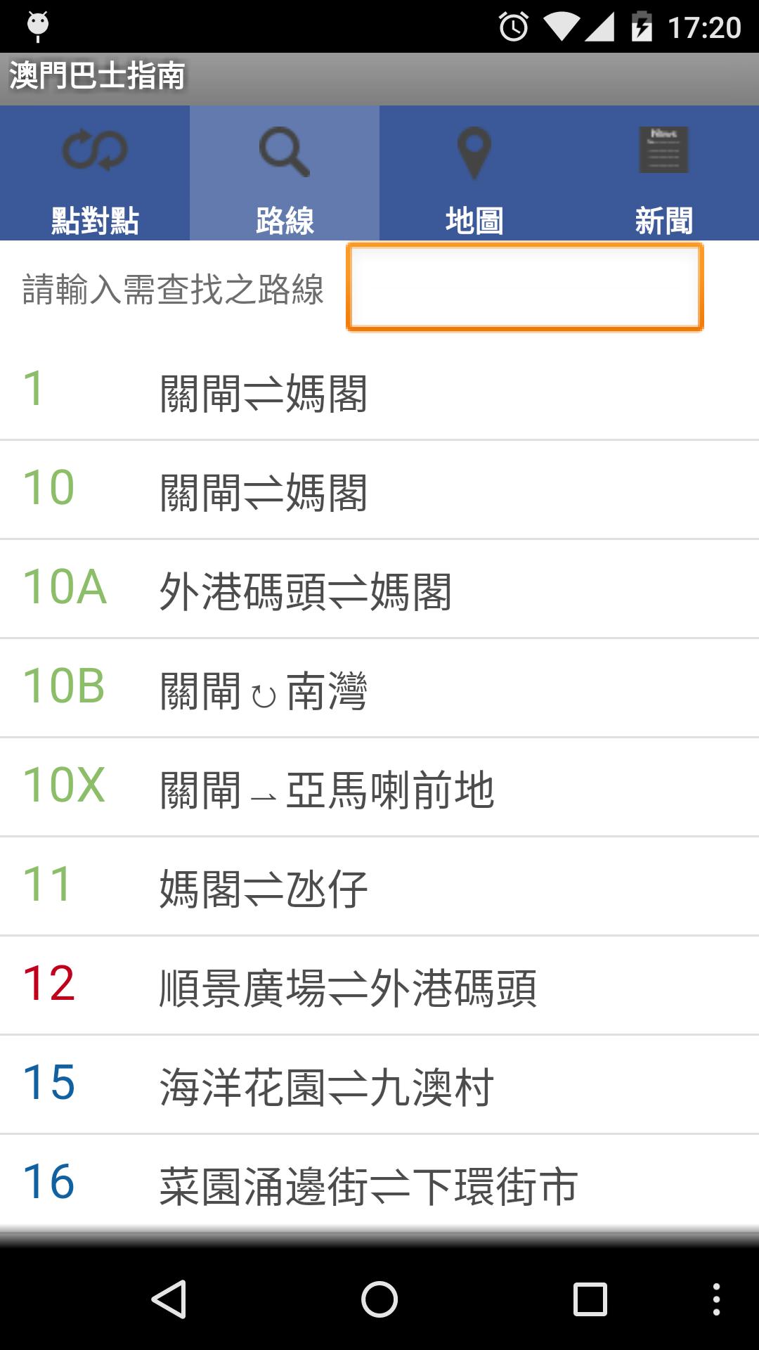 MACAU总线信息 - 查询澳门Transmac,TCM所有路线,转移信息,位置,软件的能力。