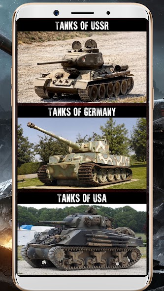 该应用程序包含储罐描述的图形元素,这些元素直接从Internet下载。图形以历史照片和有关Tanks的游戏的图片的形式呈现。