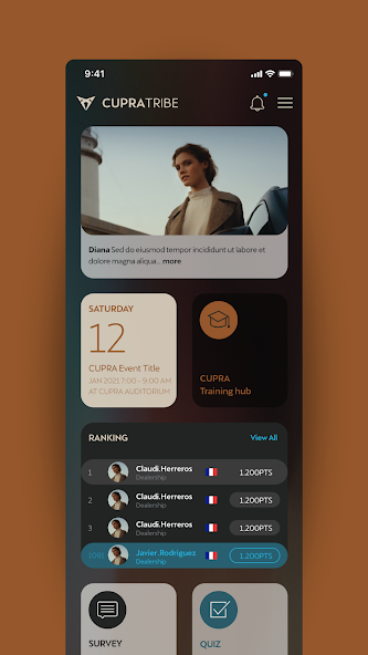 CUPRA Tribe App提供了即将举行的Cupra活动,媒体文件,有趣的测验以及有关该品牌的许多新闻。