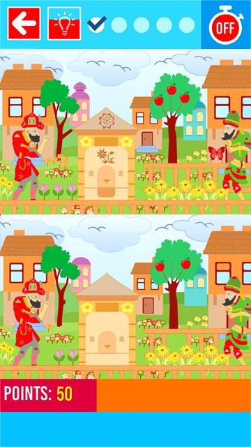 该游戏总共有12章,目标是发现2张图片之间的5个差异。每次播放章节时,差异都会发生变化,因此您可以一次又一次地播放同一章。在您通过的每一章之后,将解锁另一章。-您获得的分数记录在章节的末尾。因此,您可以与自己竞争以获得最高分。