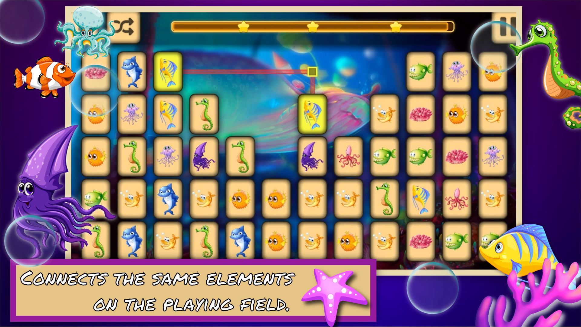 游戏的本质要找到相同的图片。找到所有相同的照片,它们从现场拍摄。图片将在它们之间形成界线的条件下清洁。如果您的图片之间有很多障碍,则该线只能弯曲三次,不会删除图像。为此,您将必须删除干扰其他图像的图像。