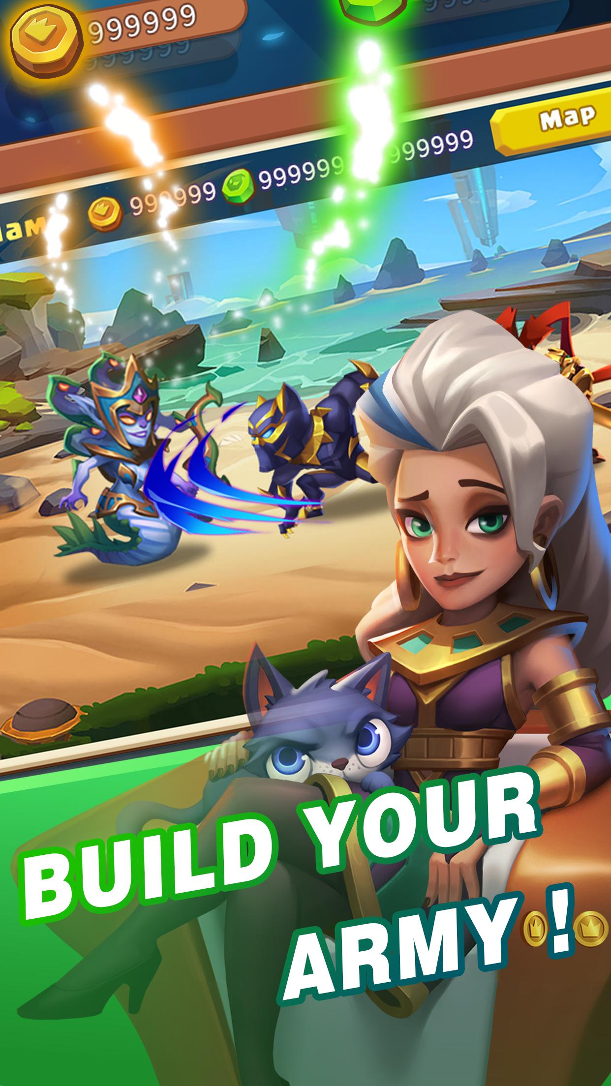 超过 100 名不同阵营的英雄和士兵,拥有特定的技能。召唤你的战士,训练他们变得更强,或者将他们转化为灵魂材料以解锁强大的被动技能。锻造魔法装备,装备你的战士以获得胜利!