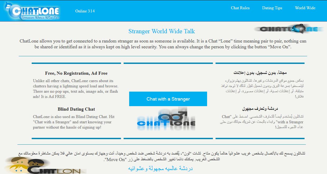 Chatlone也被用作盲人聊天。點擊“與一個陌生人聊天”,然後開始認識您的伴侶參加簽約的哈桑!