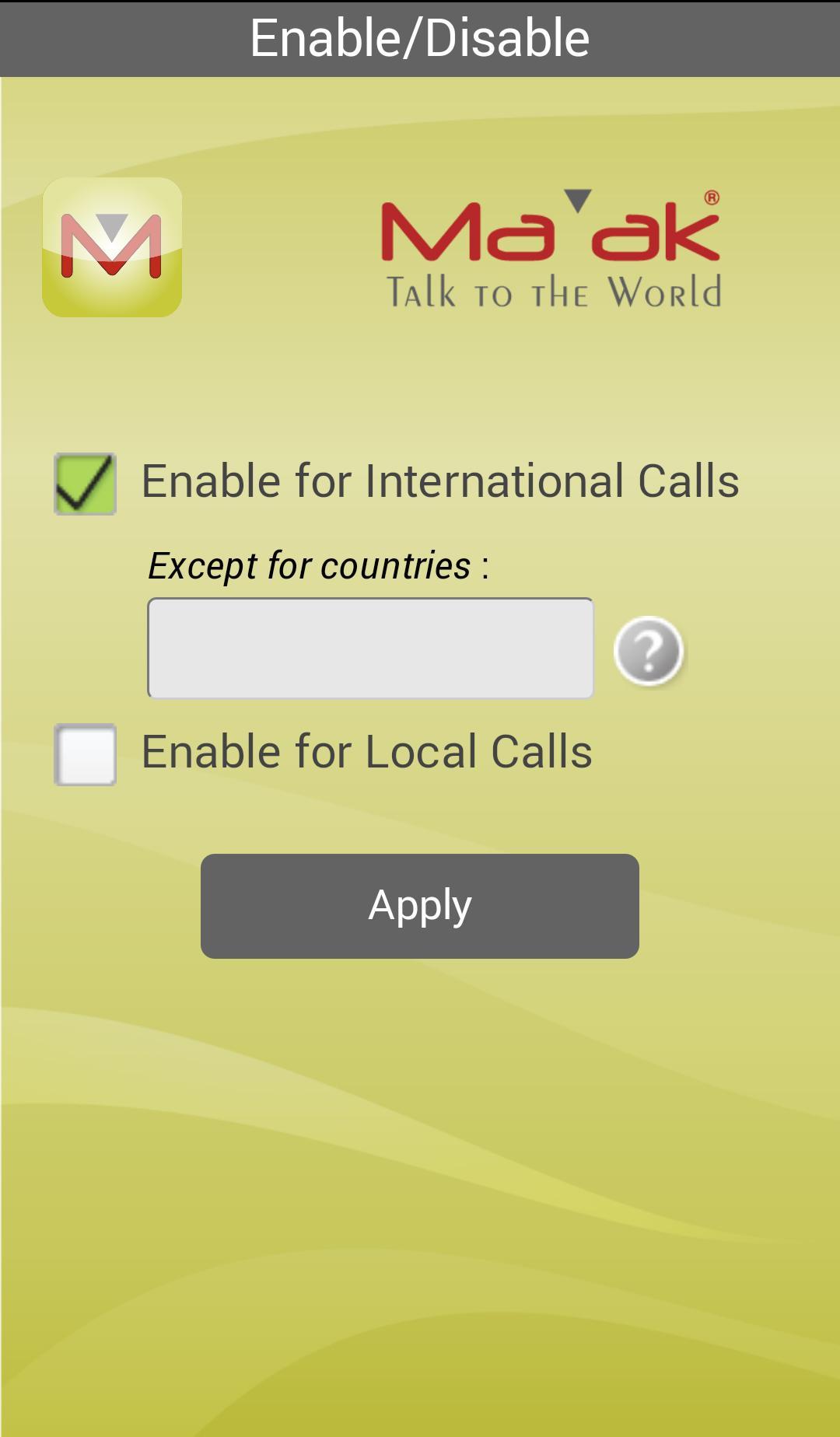 安裝此應用程序後,任何國際呼叫都將自動使用存儲的Maak卡。