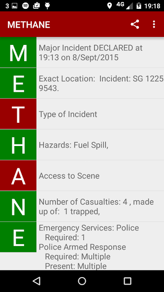 緊急服務廣泛使用甲烷首字母縮寫詞來建立一份報告,以提醒他人有關重大事件的信息。甲烷格式被廣泛教授,似乎很容易記住,但是在危機中通常很難回想起它最需要的。因此,風險是從未發送甲烷消息,隨後延遲了適當的緊急響應。 Prometheus IMT甲烷的目標是在重大事件中構建甲烷信息的直觀,簡單,快速和可靠的方式,或者在復雜事件中的乙烷消息(即消息的基本組成部分仍然非常有用)。