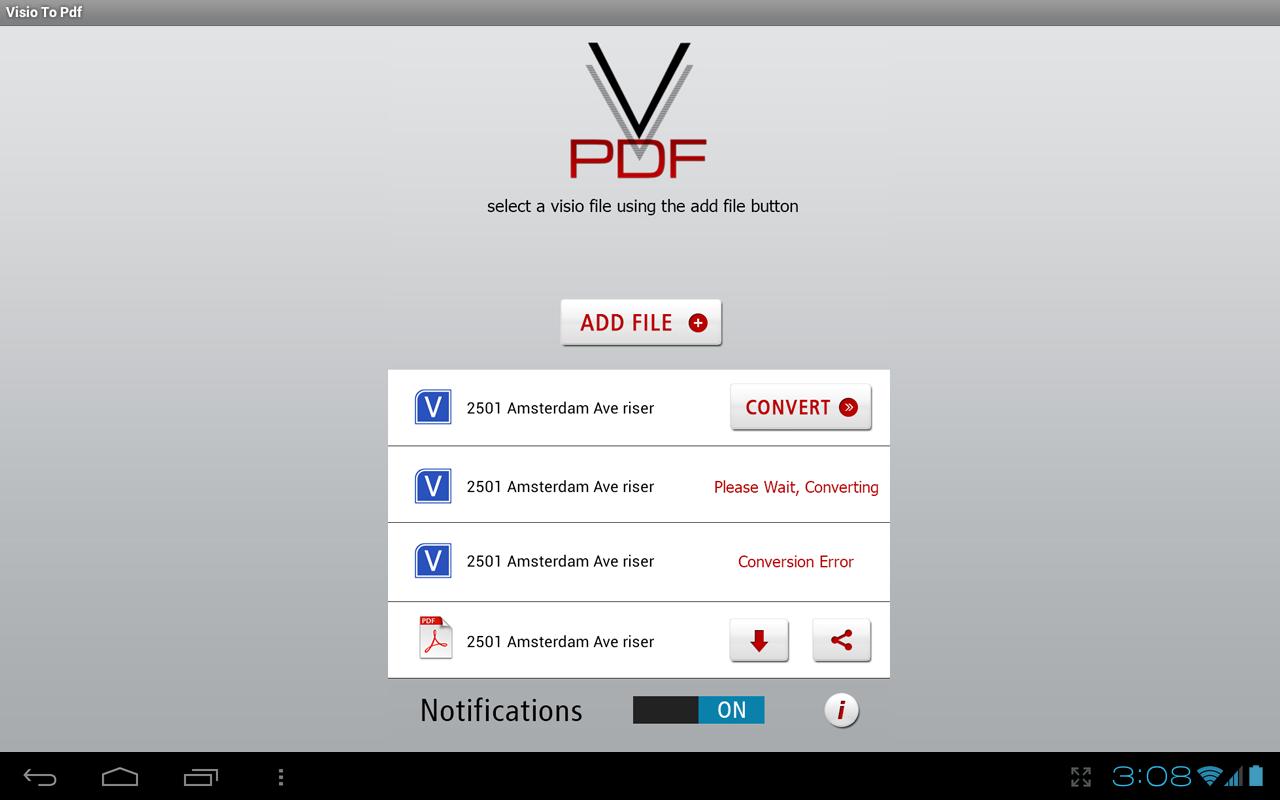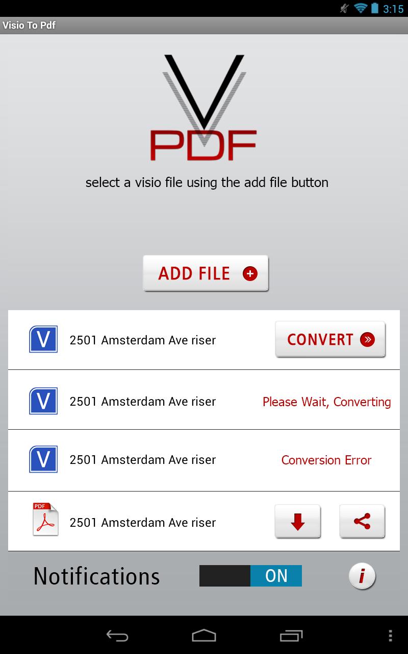 此應用程序允許您將Visio文件轉換為PDF。請注意,由於該文件將上傳到服務器進行轉換,因此可能會適用帶寬費用。