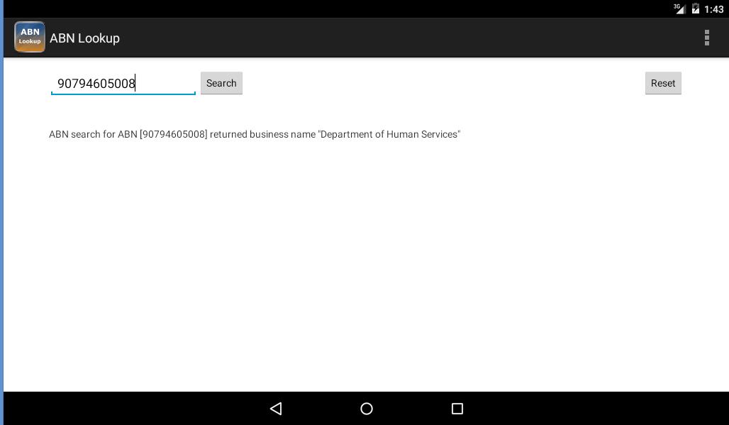 ABN Lookup應用程序可讓您發現ABN背後的人(澳大利亞業務號碼)。只需在主屏幕上以ABN為數字,然後單擊搜索按鈕。簡單的!