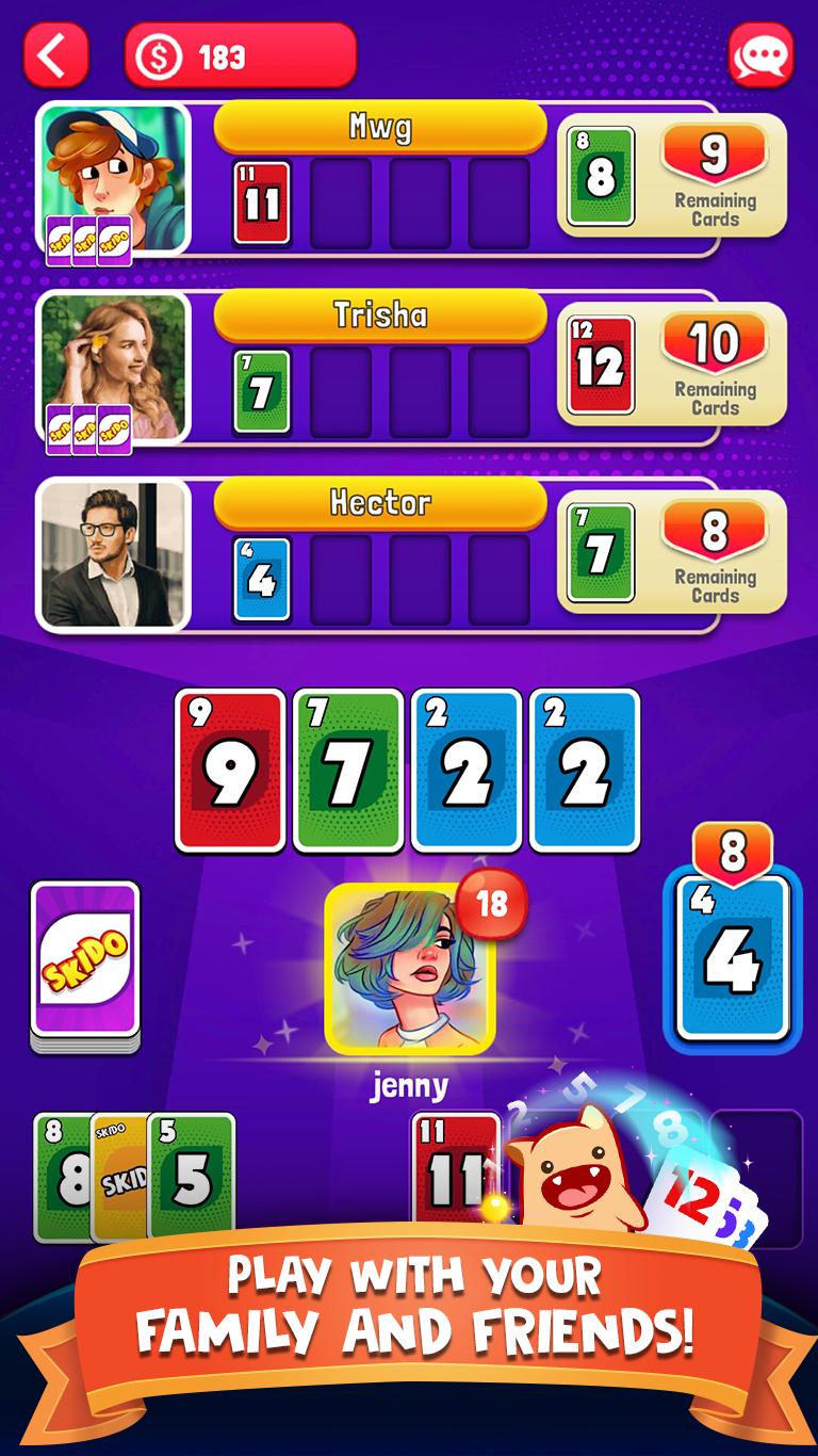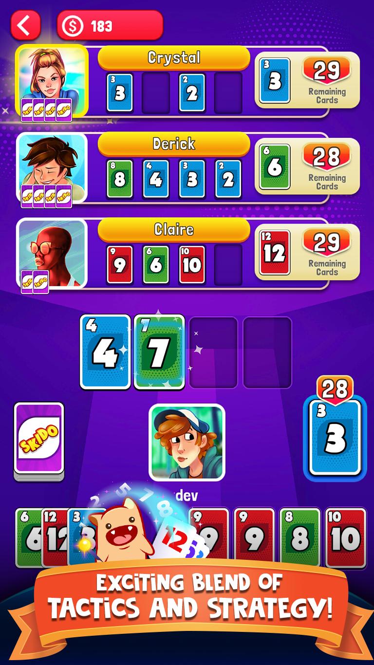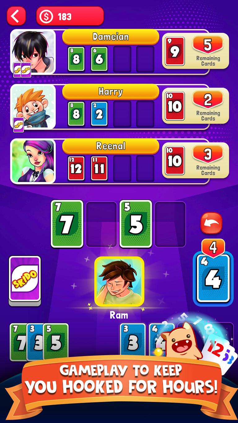 Skido是終極排序紙牌遊戲。在Skido紙牌遊戲中,玩家可以熟練地構建自己的按順序編號、升序的紙牌堆,從而融入競爭精神。